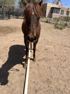comfortable being ridden anymore. He’s now 26. He enjoys walks and arena activities. He is also teaching our young mare Red to be more curious than she already is. I think this is an excellent way for him to spend his golden years.